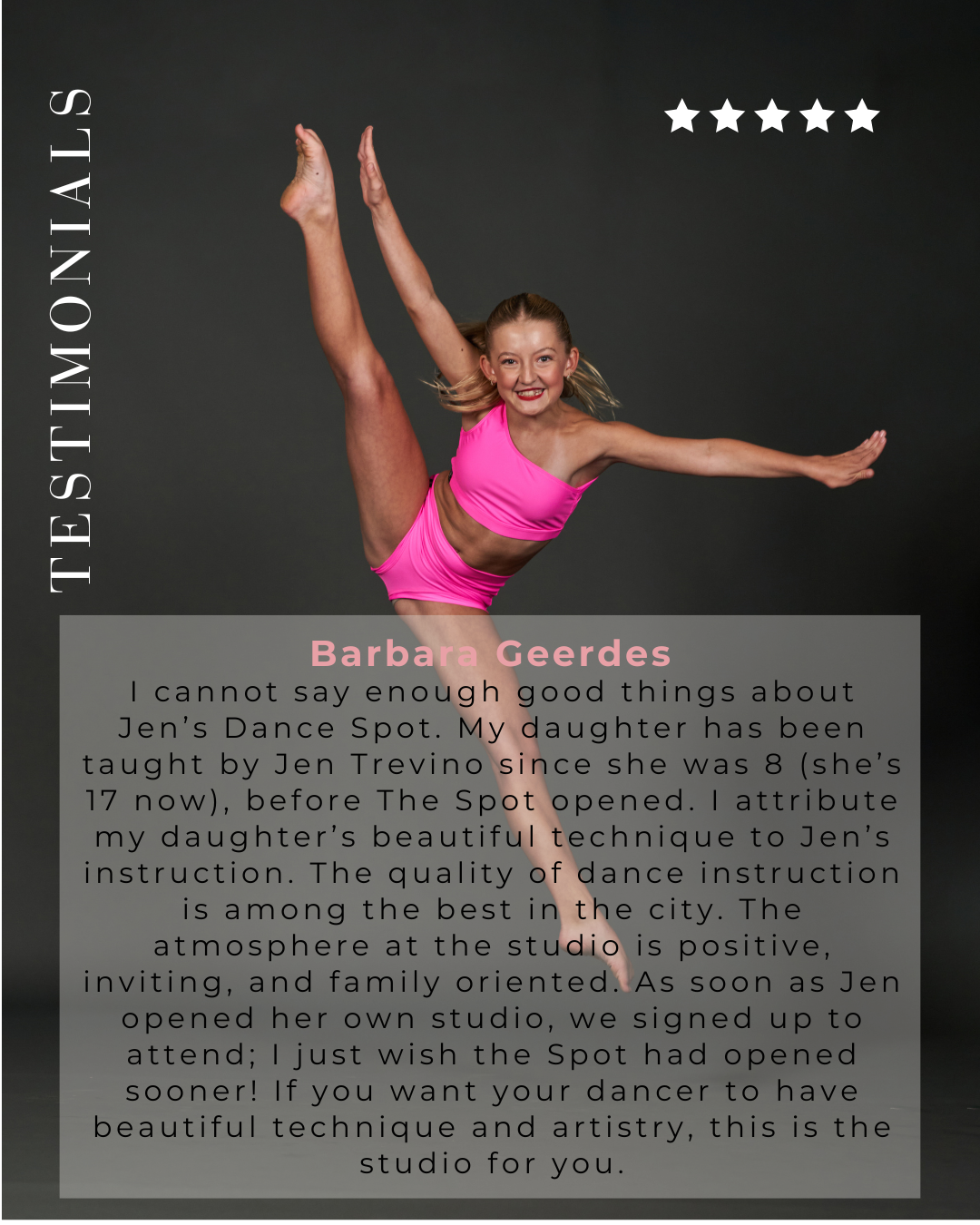 5 levels to serve students ages 7-18 teaching ballet technique, terminology, and discipline.